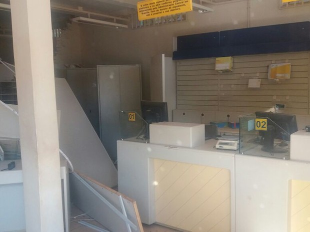 A polícia suspeita de que um dos criminosos se feriu durante a explosão porque a perícia encontrou marcas de sangue dentro da agência.