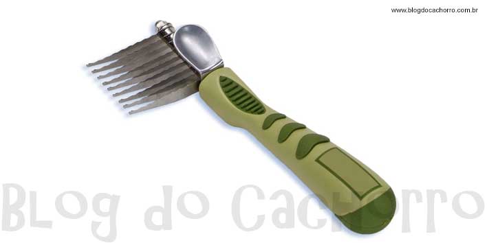 - Desembolador – Como já comentei anteriormente, desembolador é um acessório mágico para qualquer banhista de banho e tosa, e sem dúvida, oferece um resultado milagroso para pets que estão com a pelagem completamente emaranhada. Deve ser utilizado antes do banho, a fim de retirar a maior quantidade possível de nós. Também pode ser utilizado novamente na hora que o cachorro estiver terminando de secar, no caso do cachorro estar com muitos nós. A única ressalva com relação a utilização do desembolador, é o fato de ser um acessório altamente perigoso de ser manipulado por pessoas inexperientes, podendo provocar cortes profundos em quem está manipulado. Apesar de ser mais seguro para o cachorro do que para a pessoa que o está manipulando, não impossível machucar o cão, caso a pessoa que estiver utilizando o desembolador pela primeira vez não for bastante cautelosa.