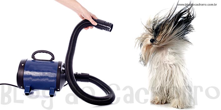- Secador – O secador é uma ferramenta indispensável para dias com clima mais ameno e clima frio. Cachorros como os meus, que tem pelagem bastante longa, em clima menos quente, podem demorar até 3 dias para secar por completo. Por isso é fundamental secar seu cachorro. Os Pet Shops utilizam um tipo de secador que chama soprador, eu tenho um destes e realmente facilita a vida. O soprador também é um dos segredos dos banhos profissionais para cães, pois abre a pelagem do cachorro devido a força do vento e deixa o pelo realmente bonito. O soprador não tem ar muito quente e tem um vento bem potente. Se você utiliza um secador manual caseiro, evite utilizar temperaturas altas, pois além de queimar a pelagem, queimam a pele do cachorro, fazendo com que ele não goste muito de secadores. De qualquer maneira, o segredo para conferir um efeito especial ao banho é secar completamente seu cão com uma temperatura não muito quente.